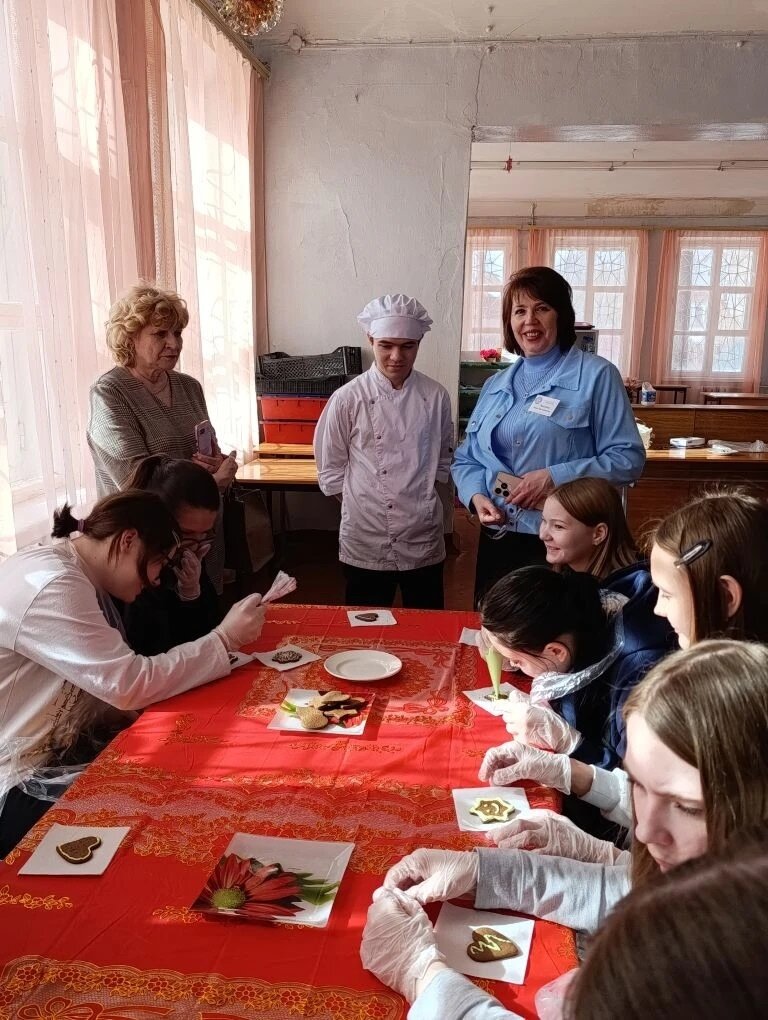 Особый интерес вызвал мастер‑класс по специальности «Поварское и кондитерское дело». Под руководством студентов и их наставника школьники украшали заранее приготовленные имбирные пряники цветной глазурью. Творческий кулинарный опыт оставил яркие впечатления у всех участников.